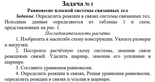 Задача 1: Равновесие плоской системы связанных тел вариант 543