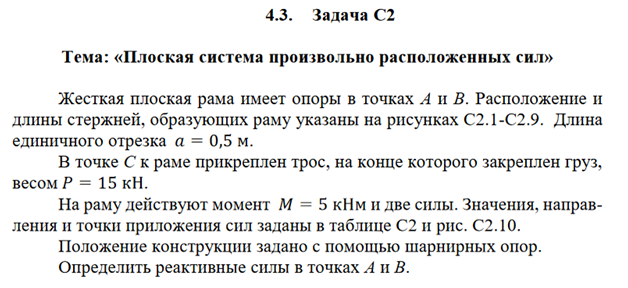 Задача: Плоская система произвольно расположенных сил вариант 91