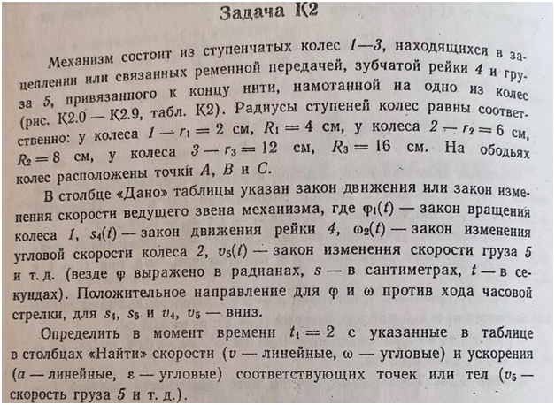 Задача К2: Кинематика твердого тела (поступательное и вращательное движение) вариант 19