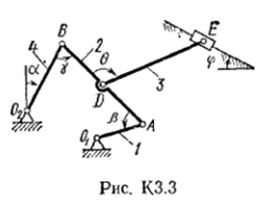 Задача К3: Кинематика плоского механизма. вариант 33