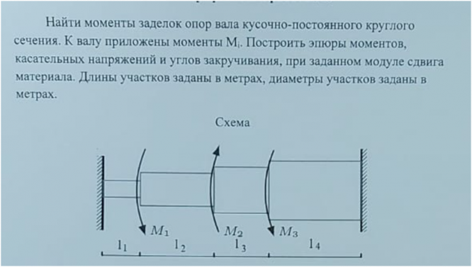 Задача: Построение эпюр для ступенчатого вала при кручении