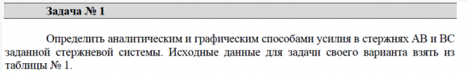 Задача 1: Определение усилий в стержнях аналитическим и графическим способом вариант 6