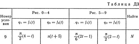 При движении грузов угол φ1 = ∠A1C3D1 изменяется по закону φ1 = f1(t), а угол φ2 = ∠A2C3D2 - по закону φ2 = f2(t). В табл. ДЗ эти зависимости даны отдельно для рис. 0 - 4 и 5 - 9, где φ выражено в радианах, t - в секундах.