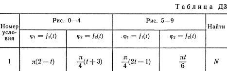 При движении грузов угол φ1 = ∠A1C3D1 изменяется по закону φ1 = f1(t), а угол φ2 = ∠A2C3D2 - по закону φ2 = f2(t). В табл. ДЗ эти зависимости даны отдельно для рис. 0 - 4 и 5 - 9, где φ выражено в радианах, t - в секундах.