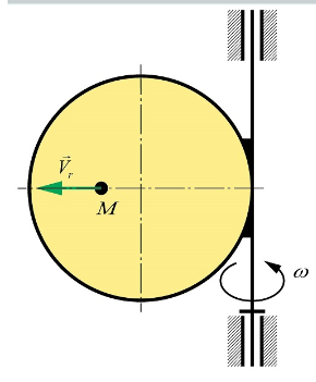 По диаметру диска, вращающегося вокруг вертикальной оси с угловой скоростью ω =6t рад/с, движется точка М с относительной скоростью vr = 8,4t. Определить модуль ускорения Кориолиса точки М в момент времени t = 2 с.