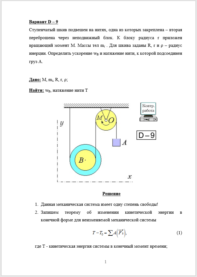 Для студентов ИДДО НИУ «МЭИ» по предмету Теоретическая механикаКМ-3 - Контрольная работа по Общие теоремы динамики для НИУ «МЭИ» КМ-3 - Контрольная работа по Общие теоремы динамики для НИУ «МЭИ»
