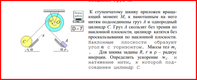 Для студентов ИДДО НИУ «МЭИ» по предмету Теоретическая механикаКМ-3. Контрольная работа "Общие теоремы динамики" - вариант 7КМ-3. Контрольная работа "Общие теоремы динамики" - вариант 7