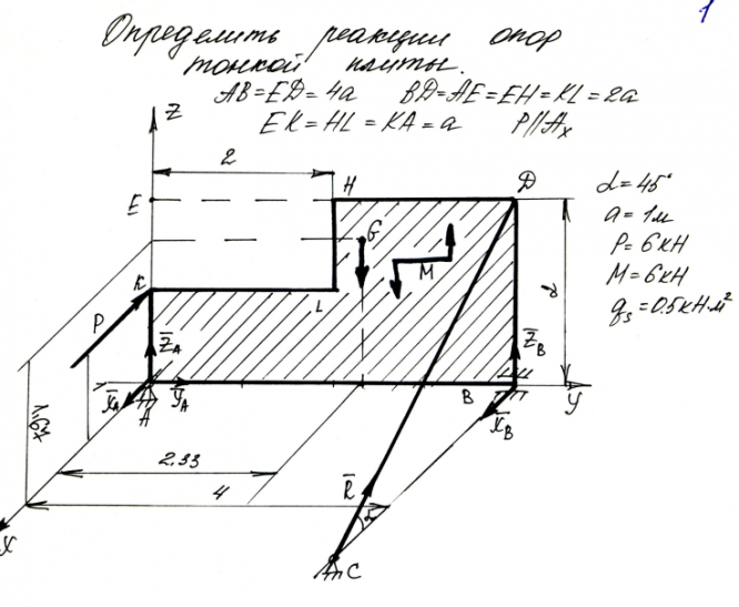 Главная » Учебные материалы » Теоретическая механика » Решения задач » Определить реакции опор тонкой плиты
