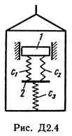 В таблице обозначено: c1, с2, c3 - коэффициенты жесткости пружин, λ0 - удлинение пружины с эквивалентной жесткостью в начальный момент времени t = 0, v0 - начальная скорость груза по отношению к лифту (направлена вертикально вверх). Прочерк в столбцах c1, с2, c3 означает, что соответствующая пружина отсутствует и на чертеже изображаться не должна. Если при этом конец одной из оставшихся пружин окажется свободным, его следует прикрепить в соответствующем месте или к грузу или к потолку (полу) лифта; то же следует сделать, если свободными окажутся соединенные планкой 2 концы обеих оставшихся пружин.