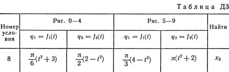 При движении грузов угол φ1 = ∠A1C3D1 изменяется по закону φ1 = f1(t), а угол φ2 = ∠A2C3D2 - по закону φ2 = f2(t). В табл. ДЗ эти зависимости даны отдельно для рис. 0 - 4 и 5 - 9, где φ выражено в радианах, t - в секундах.