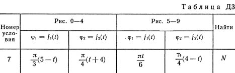 При движении грузов угол φ1 = ∠A1C3D1 изменяется по закону φ1 = f1(t), а угол φ2 = ∠A2C3D2 - по закону φ2 = f2(t). В табл. ДЗ эти зависимости даны отдельно для рис. 0 - 4 и 5 - 9, где φ выражено в радианах, t - в секундах.