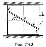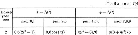 На рис. 0 - 3 желоб КЕ прямолинейный и при движении груза расстояние s = AD изменяется по закону s = f1(t), а на рис. 4 - 9 желоб - окружность радиуса R = 0,8 м и при движении груза угол φ = ∠AC1D изменяется по закону φ = f2(t). В табл. Д4 эти зависимости даны отдельно для рис. 0 и 1, для рис. 2 и 3 и т. д., где s выражено в метрах, φ - в радианах, t - в секундах.