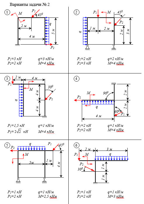 Вариант задания 85–30–30=25, т.е. следует решать задачи 25-го варианта. Варианты задач указаны на рисунках в кружках. Многие величины, определяемые в ходе решения, являются векторными, поэтому следует не только найти их модуль, но и указать на рисунке направления этих векторов (а также их компонентов). В задании на каждый тип задач рассмотрен пример. С целью экономии места рисунки заданий примеров часто расположены в тексте решения задачи. Решения задач следует сопровождать краткими комментариями, рисунки должны выполняться с помощью чертежных инструментов с соблюдением масштаба. Расчеты ведутся с точностью до третьей значащей цифры. Почерк должен быть разборчивым.