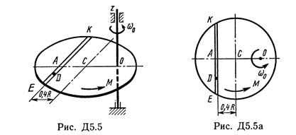 Однородная горизонтальная платформа (круглая радиуса R или прямоугольная со сторонами R и 2R, где R = 1,2 м) массой m1 = 24 кг вращается с угловой скоростью ω0 = 10 с-1 вокруг вертикальной оси z, отстоящей от центра масс C платформы на расстоянии OC = b (рис. Д5.0 - Д5.9, табл. Д5); размеры для всех прямоугольных платформ показаны на рис. Д5.0а (вид сверху).