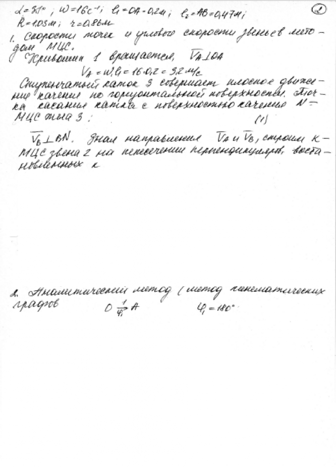 1. Скорости точек и угловая скорость звеньев методом МЦС: