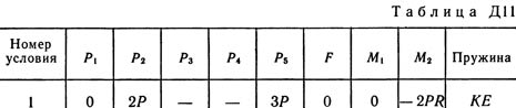 Прочерк в столбцах таблицы, где заданы веса, означает, что соответствующее тело в систему не входит (на чертеже не изображать), а ноль - что тело считается невесомым, но в систему входит; для колес, обозначенных номером 4, Р4 - их общий вес (вес платформы такой тележки не учитывается).