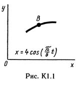 Задача К1а. Точка В движется в плоскости xy (рис. К1.0 - К 1.9, табл. К1; траектория точки на рисунках показана условно). Закон движения точки задан уравнениями: x = f1(t), y = f2(t), где x и y выражены в сантиметрах, t - в секундах.