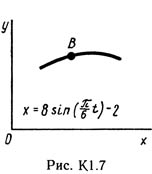 Задача К1а. Точка В движется в плоскости xy (рис. К1.0 - К 1.9, табл. К1; траектория точки на рисунках показана условно). Закон движения точки задан уравнениями: x = f1(t), y = f2(t), где x и y выражены в сантиметрах, t - в секундах.