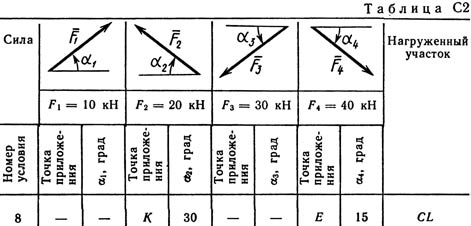 На каждую конструкцию действуют: пара сил с моментом М = 60 кН·м, равномерно распределенная нагрузка интенсивности q = 20 кН/м и еще две силы. Эти силы, их направления и точки приложения указаны в табл. С2; там же в столбце «Нагруженный участок» указано, на каком участке действует распределенная нагрузка (например, в условиях № 1 на конструкцию действуют сила F2 под углом 60° к горизонтальной оси, приложенная в точке L, сила F4 под углом 30° к горизонтальной оси, приложенная в точке Е, и нагрузка, распределенная на участке СK).