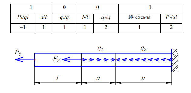 Задача: Консольный стержень нагружен равномерно распределенными нагрузками интенсивностью