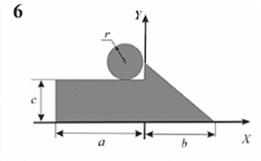 Дано: а = 0,4 м, b = 0,3 м, c = 0,2 м, r = 0,05 м. Определить: XС, YС – ?