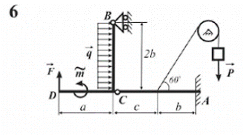 | a, м | b, м | c, м | P, Н | F, H | m, Н·м | q, Н/м |