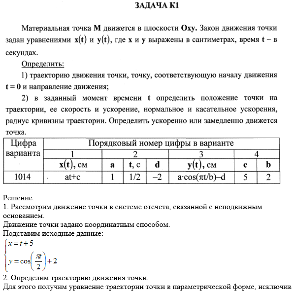 Задача по кинематике К1. Вариант 1014