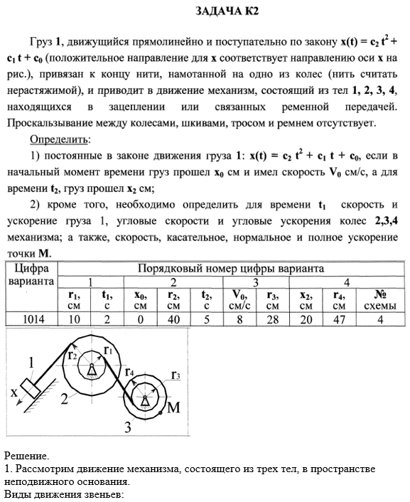 Задача по кинематике К2. Вариант 1014