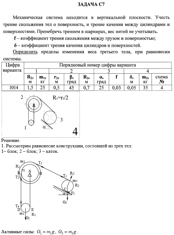 Задача по статике С7. Вариант 1014