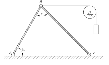 Согласно заданной схеме № 5 (рис. 1.1) определим опорные реакции в точках А и С от действия силы веса груза массой m = 50 кг. Угол между стержнями 75 .