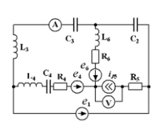 • Рассчитать токи в заданной схеме методом контурных токов, методом узловых потенциалов и неизвестный ток в одной из ветвей методом эквивалентного источника. Построить векторную диаграмму токов для одного из узлов. Определить показания приборов.