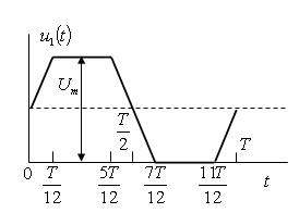 На рисунке дана схема, на вход которых воздействует одно из периодических напряжений u1(t), (график напряжения приведен на рисунке). Схемы нагружены на активное сопротивление нагрузки Rн. Численные значения напряжения Um, периода T, параметров схемы L, C и величины активного сопротивления нагрузки Rн приведены в таблице.