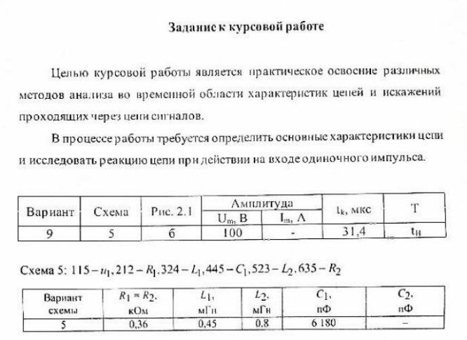 Курсовая работа: КУРСОВАЯ РАБОТА вариант 9, на тему "Исследование искажений сигналов на выходе фильтра низших частот"