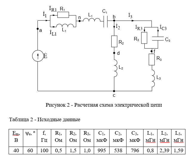 1.1.2. Рассчитать мгновенные значения токов i1(t ), i2(t ), i3(t ) по заданным источнику ЭДС e=Em sin(wt+y ) и параметрам элементов R1, R2, R3, L1, L2, L3, C1, C2, C3.