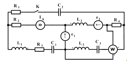 Для схемы (Рисунок 1), параметры которой приведены в табл. 1, считая, что индуктивная связь между катушками индуктивности отсутствует, а коммутатор K замкнут: