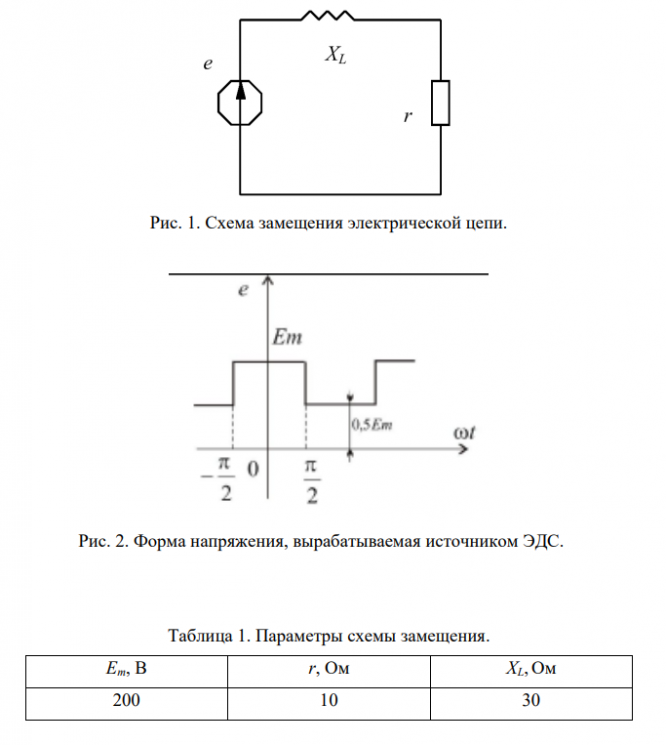 В линейной электрической цепи, схема и параметры которой приведены ниже, действует источник несинусоидального напряжения. Форма ЭДС задана.