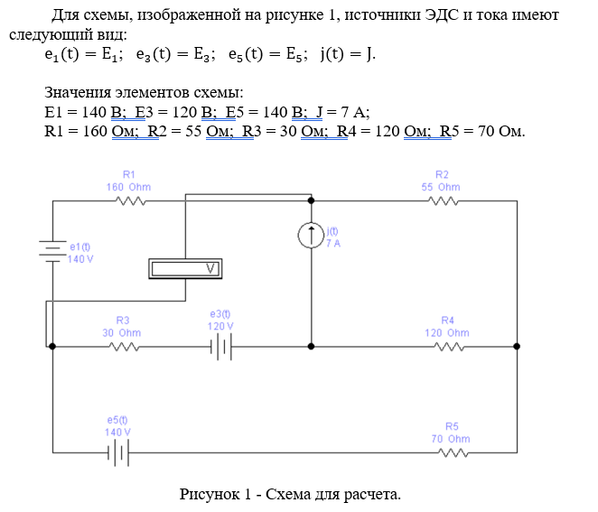 1.1 Расчет токов во всех ветвях схемы и напряжения на зажимах источника тока 5