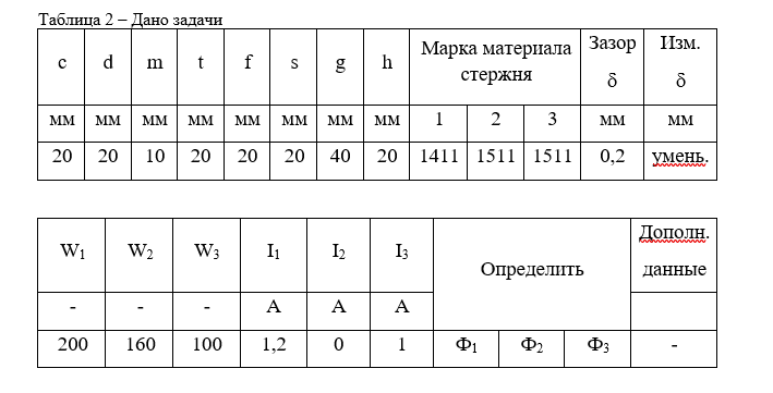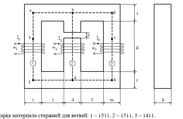 1. Рассчитать магнитную цепь графическим методом, используя метод двух узлов и определить искомые величины.