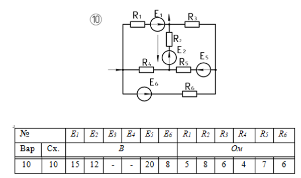 6. Найти ток ветви, указанный на схеме стрелкой, пользуясь теоремой об активном двухполюснике (принципом эквивалентного генератора).