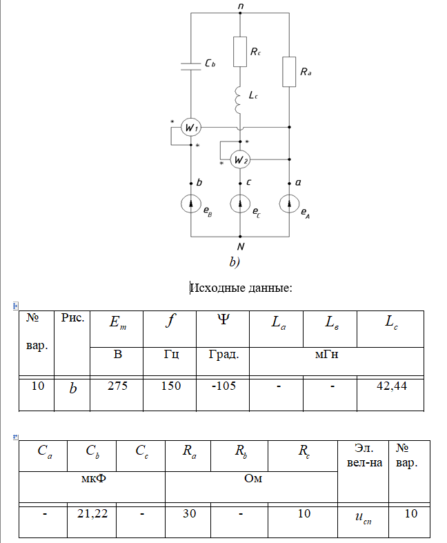 7. Полагая, что в цепь из п.6 включены три ваттметра, определить любым способом показания и произвести анализ, аналогичный п.4.