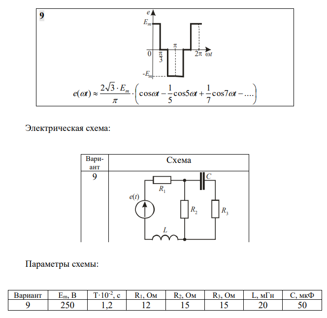 Задача 2 «Анализ линейной электрической цепи с несинусоидальным источником» В линейной электрической цепи, схема и параметры которой приведены ниже, действует источник несинусоидального напряжения. Форма ЭДС задана. Требуется: