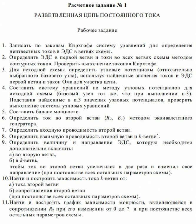 Расчетное задание № 1 РАЗВЕТВЛЕННАЯ ЦЕПЬ ПО СТОЯННОГО ТОКА
