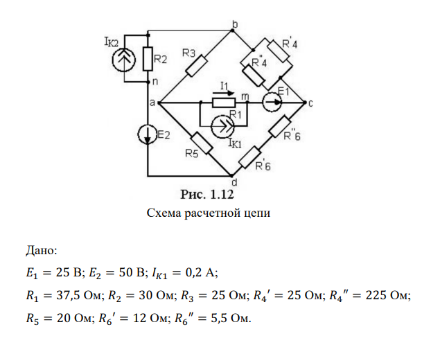 1. Упростить схему, заменив последовательно и параллельно соединенные резисторы четвертой и шестой ветвей эквивалентными. Заменить источник тока эквивалентным источником ЭДС. Дальнейший расчет (п.п. 2-8) вести для упрощенной схемы.