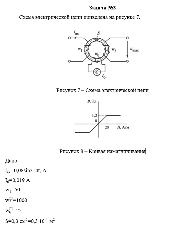 Электрическая цепь питается от источника тока iвх=Imsin314t. Параметры цепи в зависимости от последней цифры шифра зачетки представлены в таблице. Характеристика магнитопровода представлена на рисунке. 1. Найти и обозначить на схеме одноименные зажимы обмоток. 2. Рассчитать и построить Ф(t). 3. Рассчитать uвых(t) и построить на одном графике uвх(t) и uвых(t).