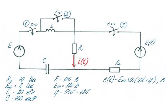 1. Рассчитать классическим методом ток i1(t) на трех этапах, соответствующих последовательному замыканию (или размыканию) трех ключей.