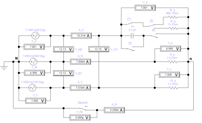 1.3 Несимметричная смешанная нагрузка с нулевым проводом