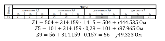 Параметры источников и нагрузки для выполнения лабораторной работы