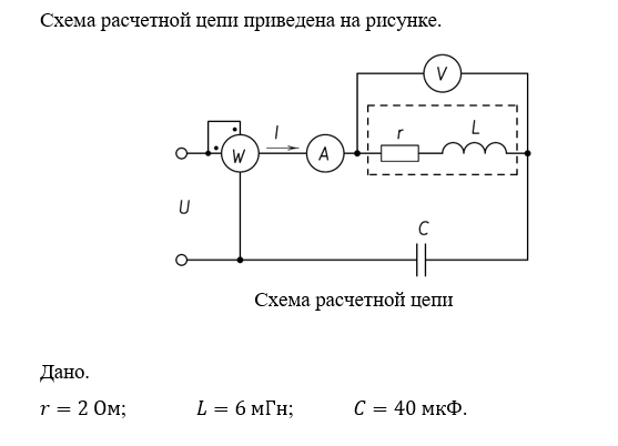 Параметры катушки: активное сопротивление – ; индуктивность – . Параметр идеального конденсатора – емкость .
