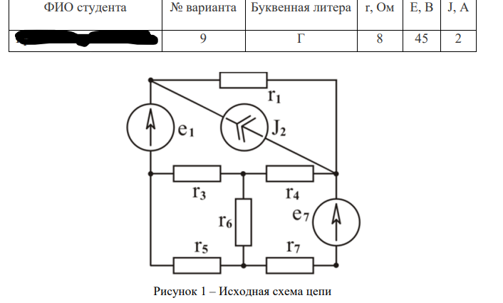 Законы Кирхгофа и расчёт резистивных электрических цепей Определить токи в ветвях методом контурных токов и узловых напряжений. Сопротивления всех резисторов, ЭДС источников напряжения и токи источников тока заданы по вариантам в таблице.