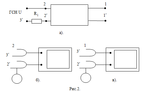 • Для исследования режима холостого хода четырёхполюсника при прямой передачи энергии, собрать цепь по схеме рис. 1, а.